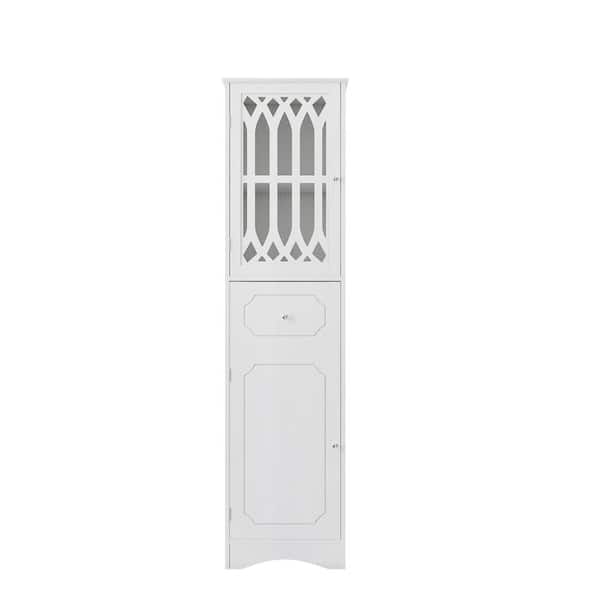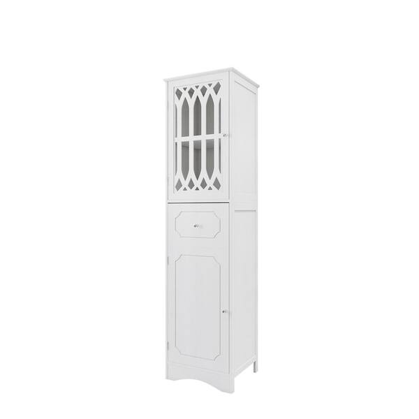 White Tall Bathroom Accent Storage with Drawer