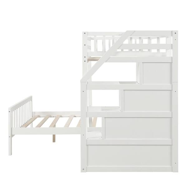 White Twin over Full Loft Bed with Staircase