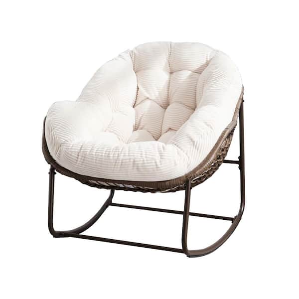 White Wicker Outdoor Rocking Chair with Padded Cushion