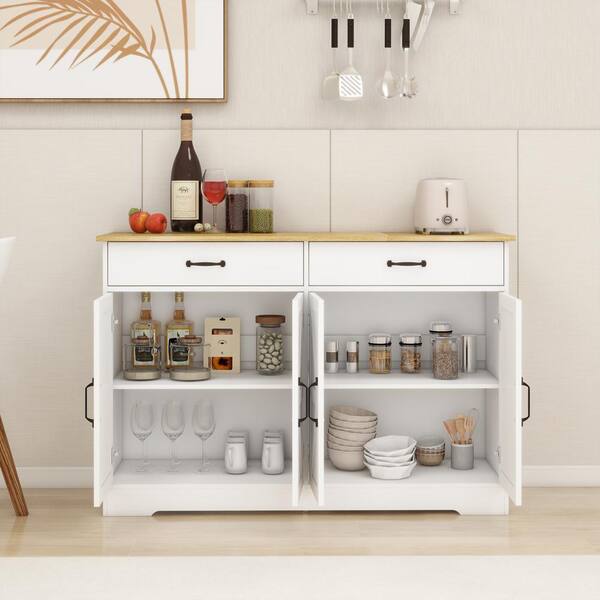 White Wood 48 in. Kitchen Island with Drawers, Farmhouse Buffet Cabinet Storage Sideboard for Dining Living Room Kitchen