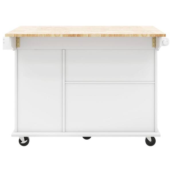 White Wood 53.9 in. W Kitchen Island with Drop Leaf, Internal Storage Rack and 3-Tier Pull Out Cabinet Organizer