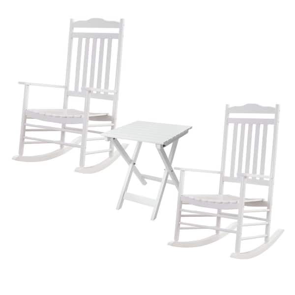 White Wood Outdoor Rocking Chair Porch Patio Indoor Rocker(3-Parks)