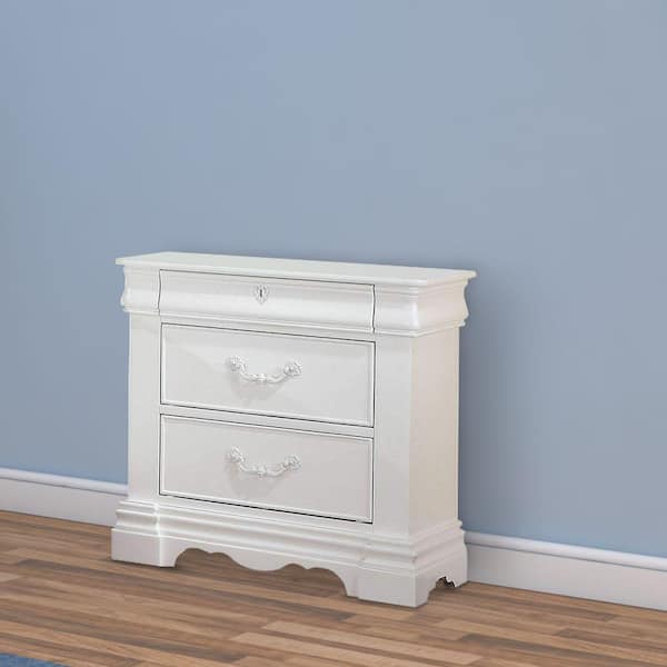 White Wooden Nightstand with 2-Drawer and Bracket Feet 26" L x 15.7" W x 28" H