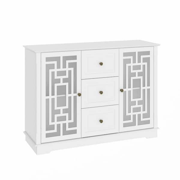 White Wooden Sideboard, Storage Cabinet, Food Pantry, Wine Cabinet with Shelves and 3 Drawers