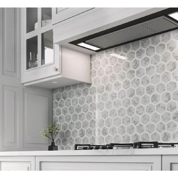 White and Gray 4 in. x 5 in. Hexagon Polished Marble Mosaic Tile Sample (0.13 sq. ft./Piece)