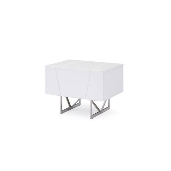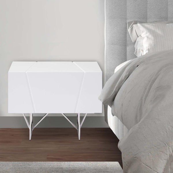 White and Silver 1-Drawer 19 in. Wooden Nightstand