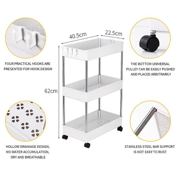 White and Silver 3-Layer Mobile Multi-functional Kitchen Storage Cart