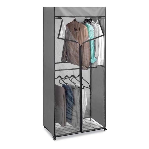 Portable Closet 68.5 in. H x 30.3 in W x 18 in. D 2-Tier Metal Frame and Clear View Protective Cover in Gray