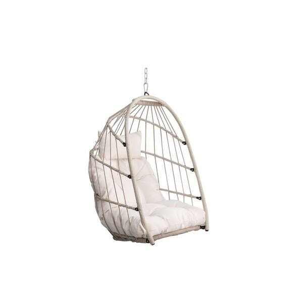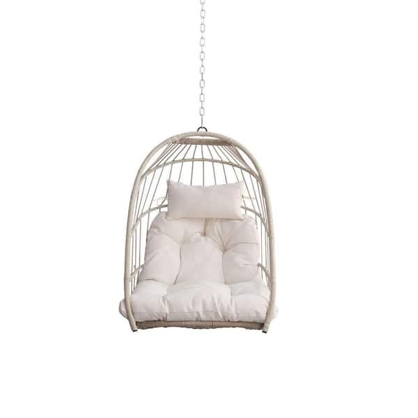 Wicker Egg Shape Hanging Porch Swing with White Cushions