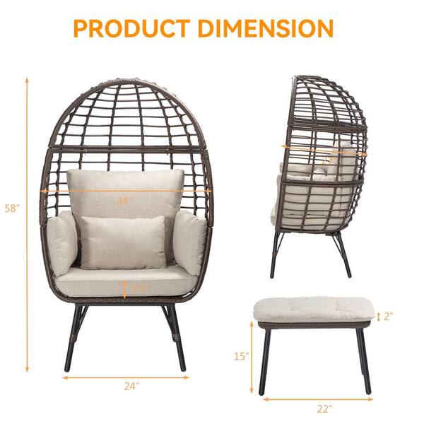 Wicker Indoor Outdoor Lounge Chair, PE Rattan Egg Chair Lounger for Patios, Living Room with Beige Cushion and Ottoman