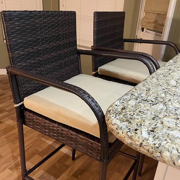 Wicker Outdoor Bar Stool with Light Brown Cushion (2-Pack)