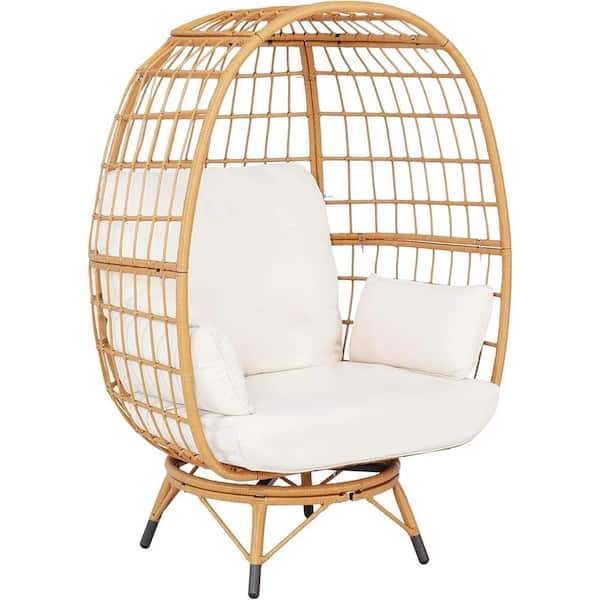 Wicker Outdoor Lounge Chair Patio Egg Chair Oversized Basket Chair with Beige Cushions for Living Room Backyard Balcony