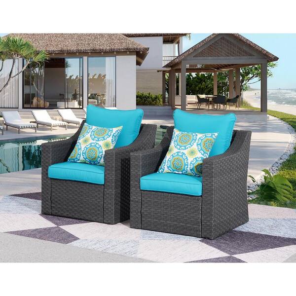 Wicker Outdoor Lounge Chair with Blue Cushion (2-Pack)