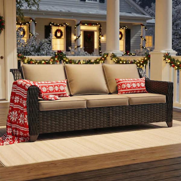 Wicker Outdoor Patio Sectional Sofa with Thick Baby Beige Cushions