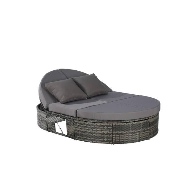 Wicker Outdoor Reclining Day Bed, Lounger with Adjustable Backrests with Dark Gray Cushions and Pillows