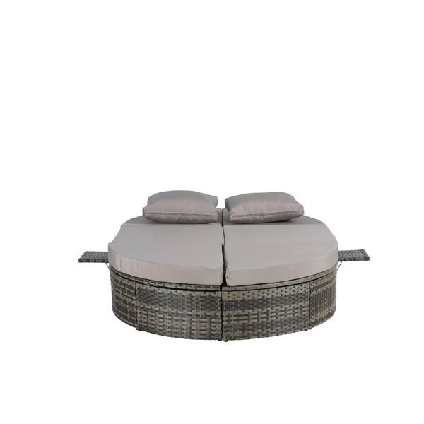 Wicker Outdoor Reclining Day Bed, Lounger with Adjustable Backrests with Light Gray Cushions and Pillows