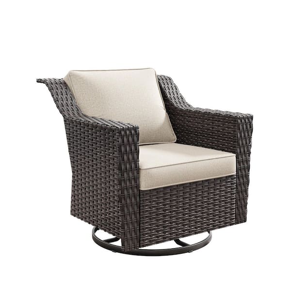 Wicker Outdoor Rocking Chair Patio Swivel Chair with Beige Cushions