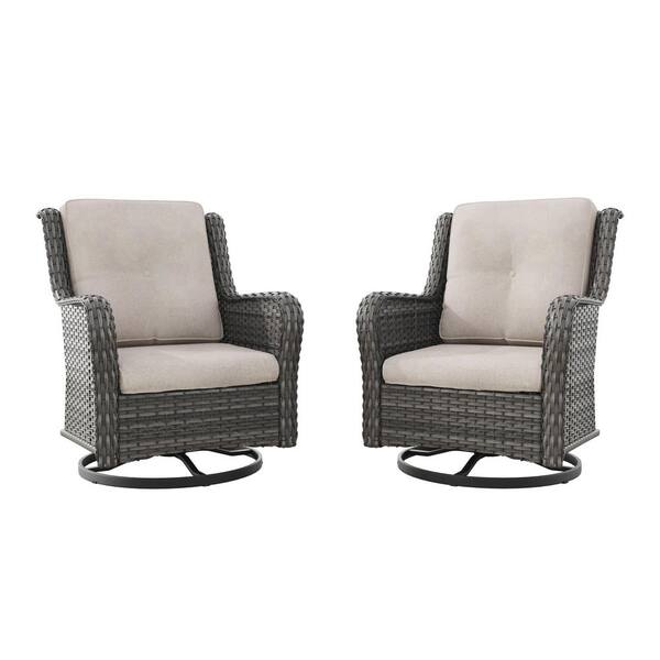 Wicker Outdoor Rocking Chair Patio Swivel with Beige Cushions (2-Pack)