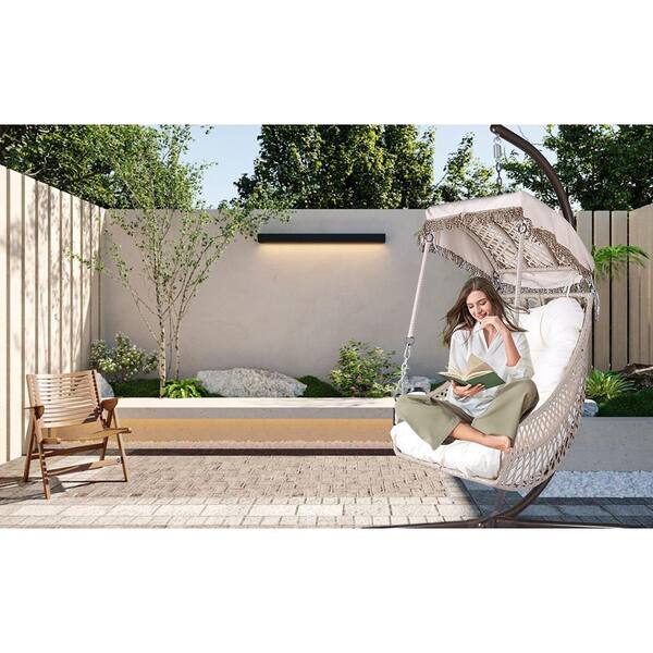 Wicker Porch Swing, Patio Swing Egg Chair with Stand, Sunshade Cloth, Beige Cushion And Pillow for Courtyard, Bedroom