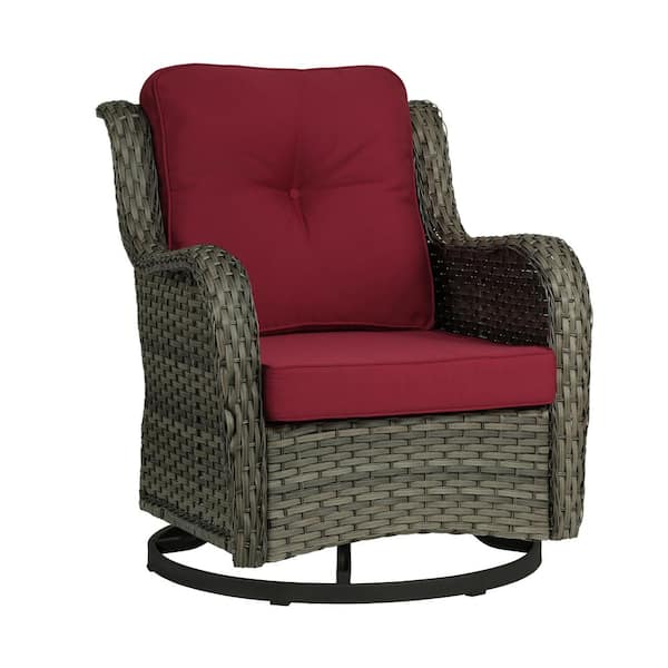 Wicker Rattan Taupe Patio Outdoor Rocking Chair Swivel with Red Cushions (Set of 1)