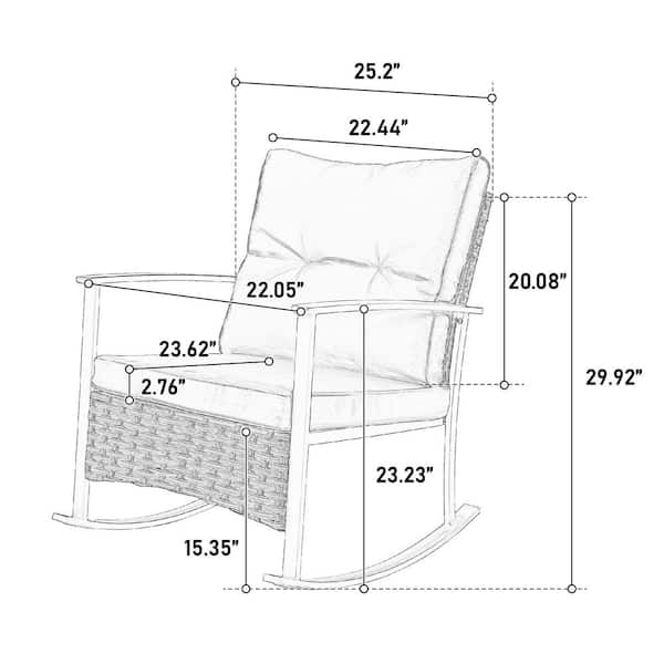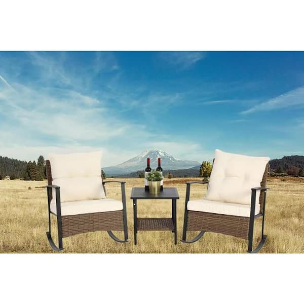 Wicker Rocking Outdoor Rocking Chair 3-Piece, Patio Rocking Chairs 2, Patio Furniture Set with White Cushions