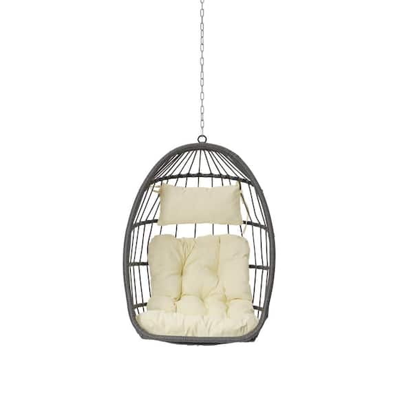 Wicker Wood Porch Swing Outdoor Indoor Garden Rattan Egg Swing Chair Hanging Chair with Yellow Cushions