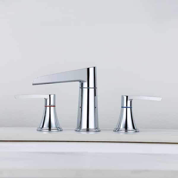 Widespread 2-handle Bathroom Faucet with Waterfall Rotatable Spout in Chrome