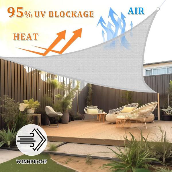 16 ft. x 16 ft. Light Grey Triangle Premium Permeable Sun Shade Sail with Stainless Steel D-rings, 95% UV Rays Block