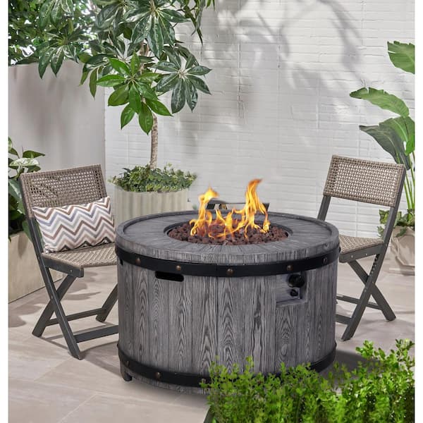 36 in. 50000 BTU Terrafab Propane Smokeless Fire Pit Table with Weather Resistant Cover and Lava Rocks, Grey