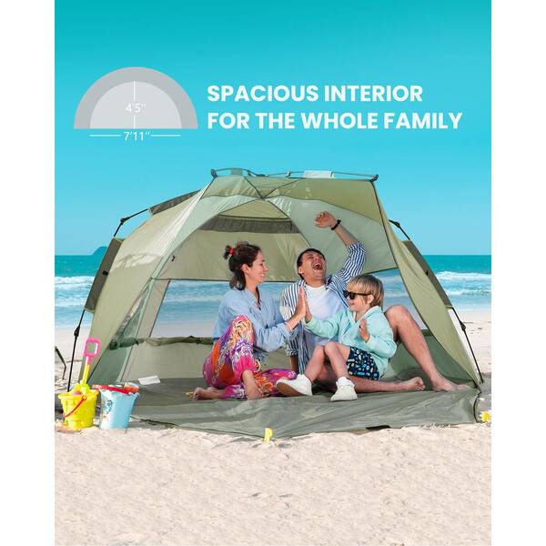 4 Person Pop Up Beach Tent with UPF 50+ UV Protection Sunshade and Ventilation Mesh Windows, Green