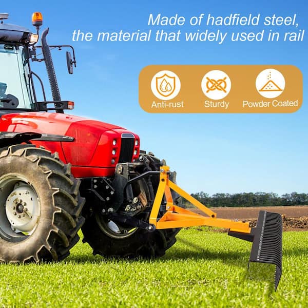 61 in. Tractor Tow-Behind Landscape Rock Rake with a 3-Point Hitch System and 360° Rotation