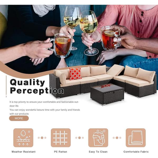 7-Piece Big Size Wicker Outdoor Patio Conversation Seating Set with Khaki Cushions