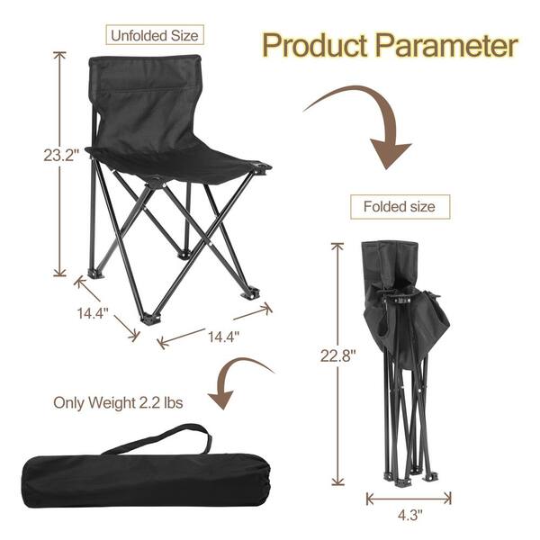 Black Oxford Cloth Stool Portable Folding Camping Chair with A Storage Bag, Small