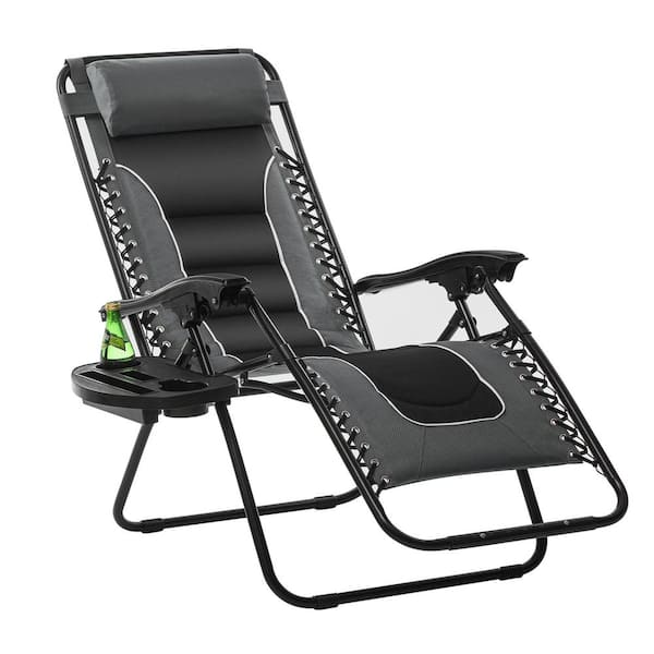 W25.6 in. x H 44 in. Zero Gravity Metal Lounge Chair Folding with Padde Foam And Pillow, with Removable Side Table Grey