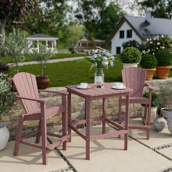 Classic 3-Piece Cherrywood HDPE Plastic Outdoor Patio Bar Set