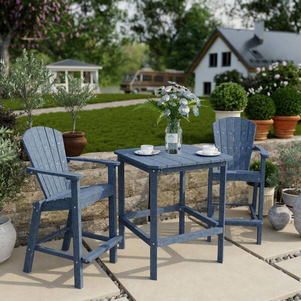 Classic 3-Piece Patriot Blue HDPE Plastic Outdoor Patio Bar Set
