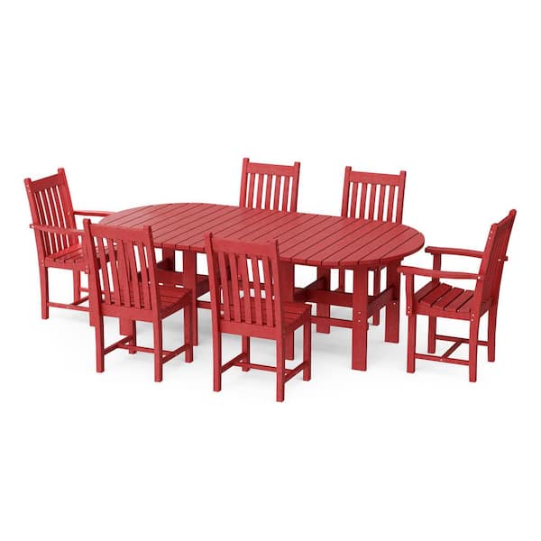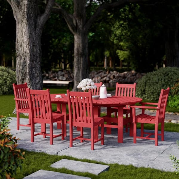 Classic Cardinal Red 7-Piece HDPE Plastic Outdoor Patio Dining Set