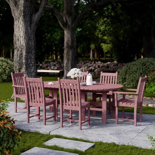 Classic Cherrywood 7-Piece HDPE Plastic Outdoor Patio Dining Set