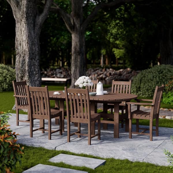 Classic Tudor Brown 7-Piece HDPE Plastic Outdoor Patio Dining Set