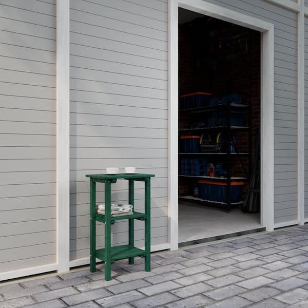 Classic Turf Green HDPE Plastic Outdoor 3-Shelf Side Table