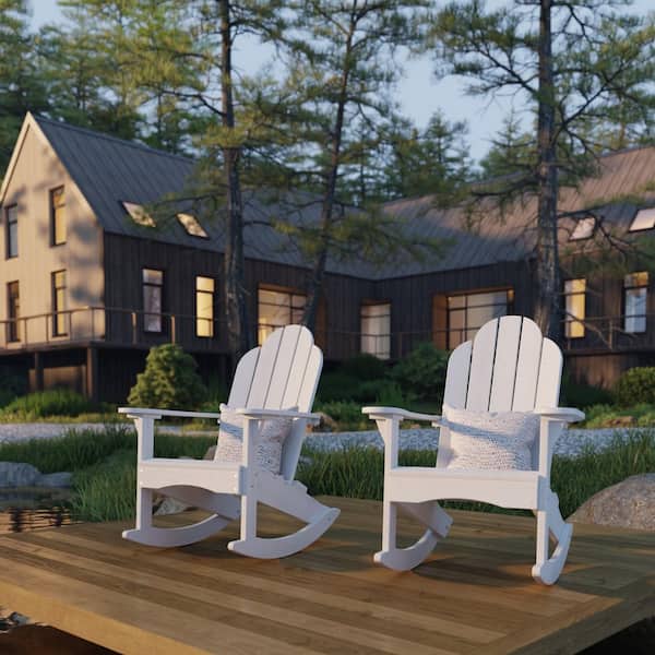 Classic White Rectangle HDPE Plastic Outdoor Rocking Chair