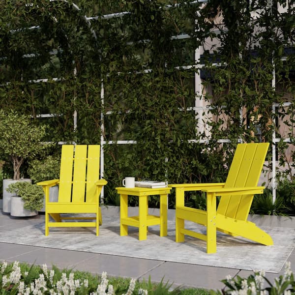 Freedom Lemon Yellow HDPE Plastic Modern Outdoor Adirondack Chair with Side Table (2-Pack)