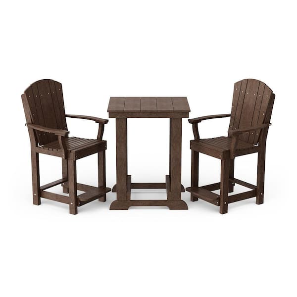 Heritage 3-Piece Tudor Brown HDPE Plastic Outdoor Patio Counter Set