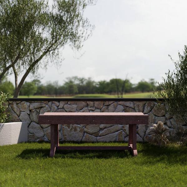 Heritage 42 in. Cherrywood HDPE Plastic Outdoor Patio Backless Bench