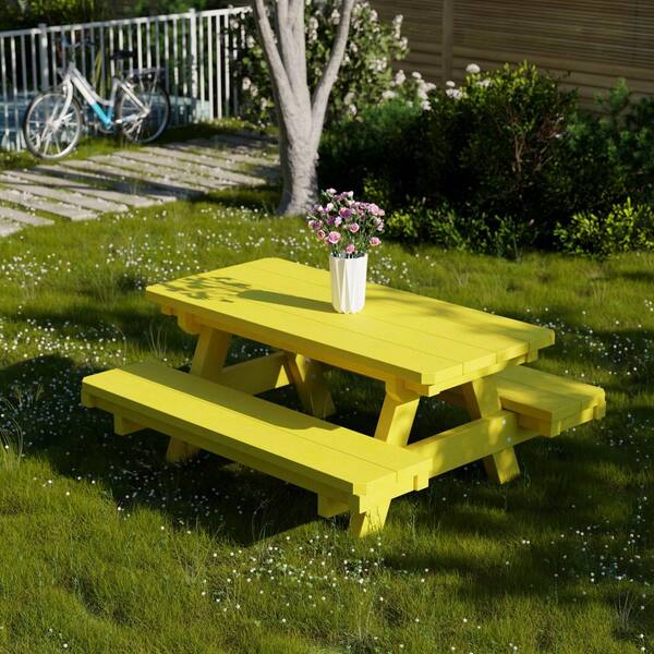 Heritage 48 in. Lemon Yellow Rectangle HDPE Plastic Child's Picnic Table Seats 6-Kids