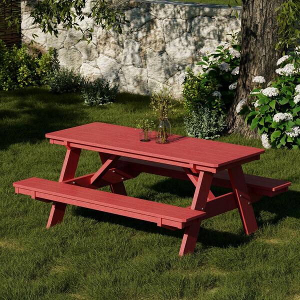 Heritage 72 in. Cardinal Red Rectangle HDPE Plastic Picnic Table Seats 6 People