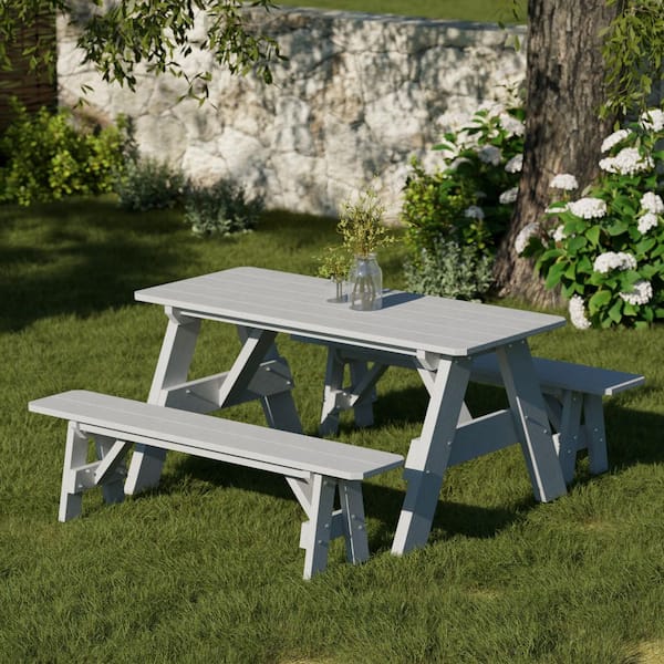 Heritage 72 in. Light Gray Rectangle HDPE Plastic Picnic Table with Detached Benches Seats 6 People
