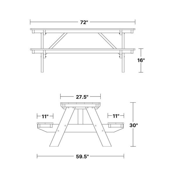 Heritage 72 in. Light Gray and White Rectangle HDPE Plastic Picnic Table Seats 6 People