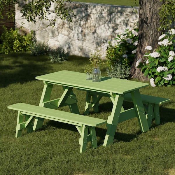Heritage 72 in. Lime Green Rectangle HDPE Plastic Picnic Table with Detached Benches Seats 6 People