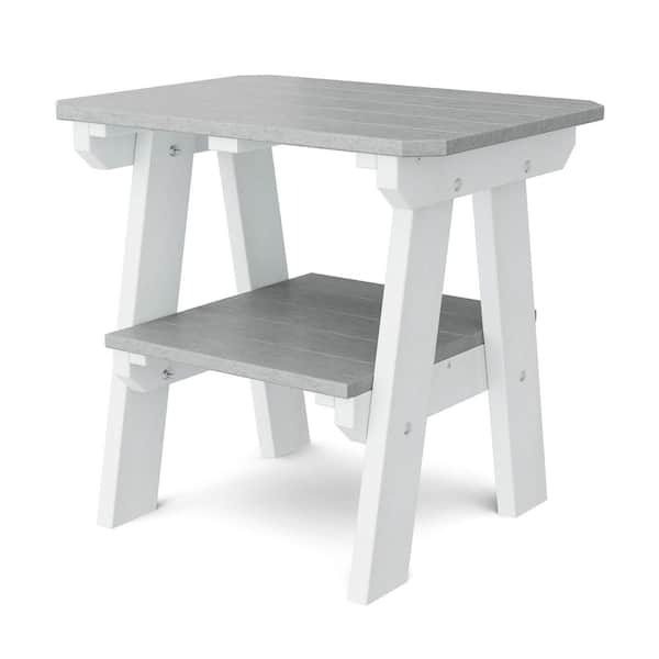 Heritage Light Gray and White HDPE Plastic Outdoor Side Table